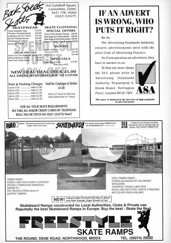 Freestyle Skate Ramps, Back Street Skates Adverts and others 1991