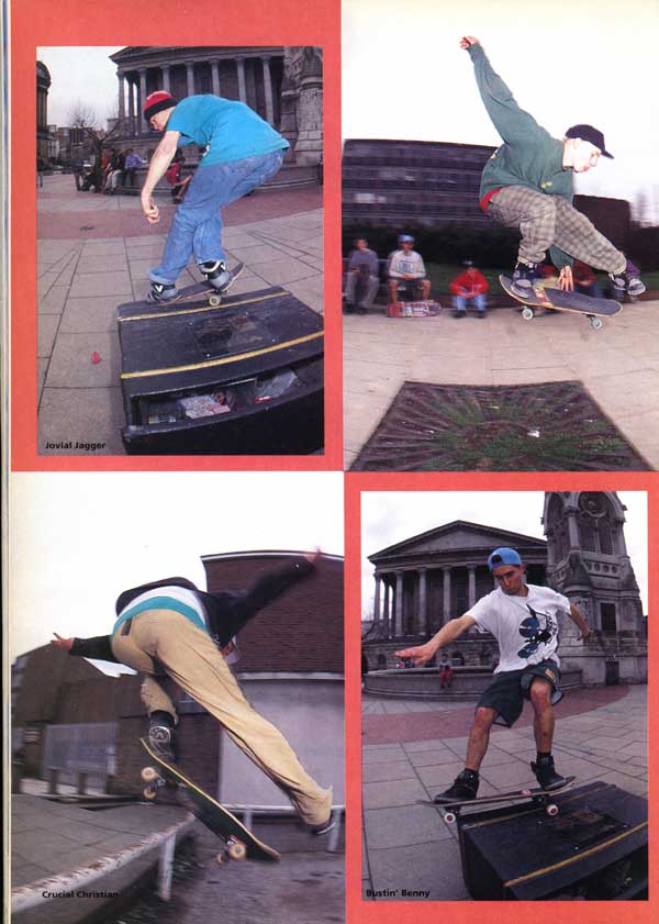 I’ve just read through this and noticed “(???check names???)” near the end. It made me smile and pause to think of Gavin, or was it me, making a note to consult with everyone about whether these were the right people to mention at this point. I was about to delete it, but then I checked the printed magazine… Sure enough, we didn’t cut it out. It’s there in the final piece. “Caption goes here…”In your second preliminary run you begin to make an impression — you become the one who did the silly things “Gosh, what stark-bollock stupid things he did in his silly but stylish hat.” Your skating will have been of an acceptable standard — no better and no worse than anybody else — but you stood out, you have an identity: the skater in the silly but stylish hat who did the stark-bollock stupid things.