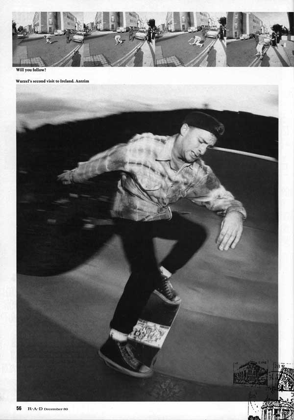 One of the skaters featured here had appeared on the cover of those early U2 albums as a little boy. I assume the “will you follow” caption is a reference to that, although that aspect of his life was played down at the time.