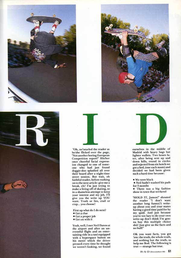 “Not another boring European Competion report” says the fictional reader in the opening of this article on the Madrid skateboard content. We suspected that we were keener on the rest of Europe than most of our readers, and sometimes it showed.