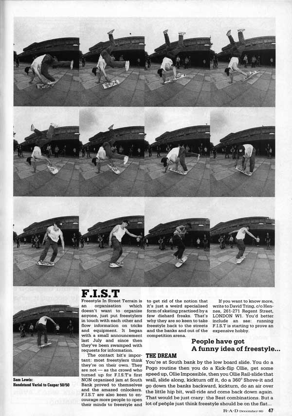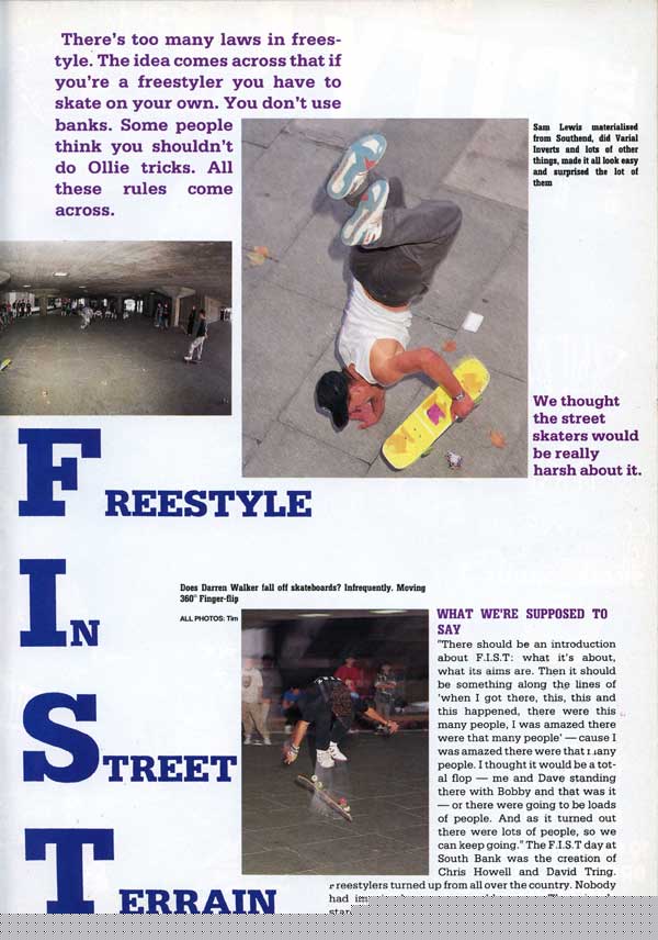 Chris Howell was a freestyler who organised events under the “F.I.S.T.” banner (Freestyle In Street Terrain). As the caption said: