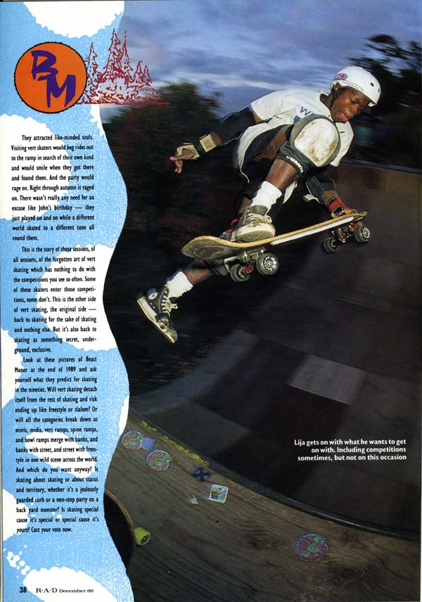 “Lija gets on with what he wants to get on with. Including competitions sometimes, but not on this occasion” — that was the oblique caption to this full-page picture of a skater who deserved more coverage than he got at this time.