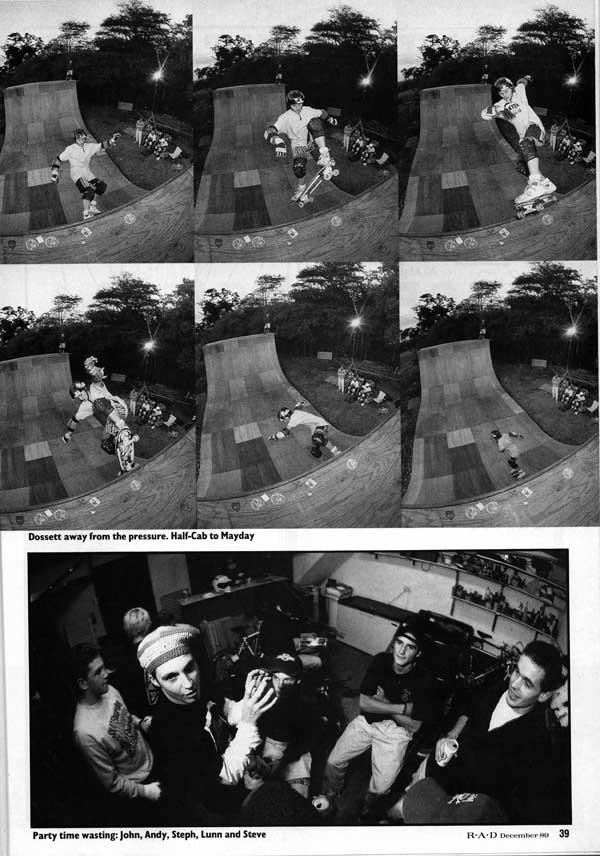 In fact the party in the pictures took place: there was a barbecue to celebrate John’s thirteenth birthday. But there was a party every weekend at Beast Manor, come to that. As the skate scene in Britain fragmented into micro scenes, each jealously guarding their fragment of street, bank or mini-ramp, a band of good old vert skating boys took to the hills north of London… Out of the remains of an old midi-ramp scene grew a new one which had acquired the taste for vert.