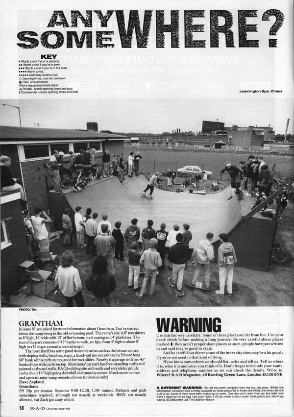 This fascinated me: news of a skateboard park in an old public swimming pool in Grantham. It had been there for years, largely ignored by the skateboard establishment. We thought we knew it all, but we didn’t: