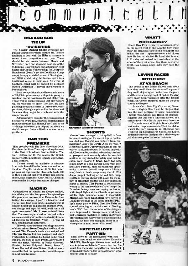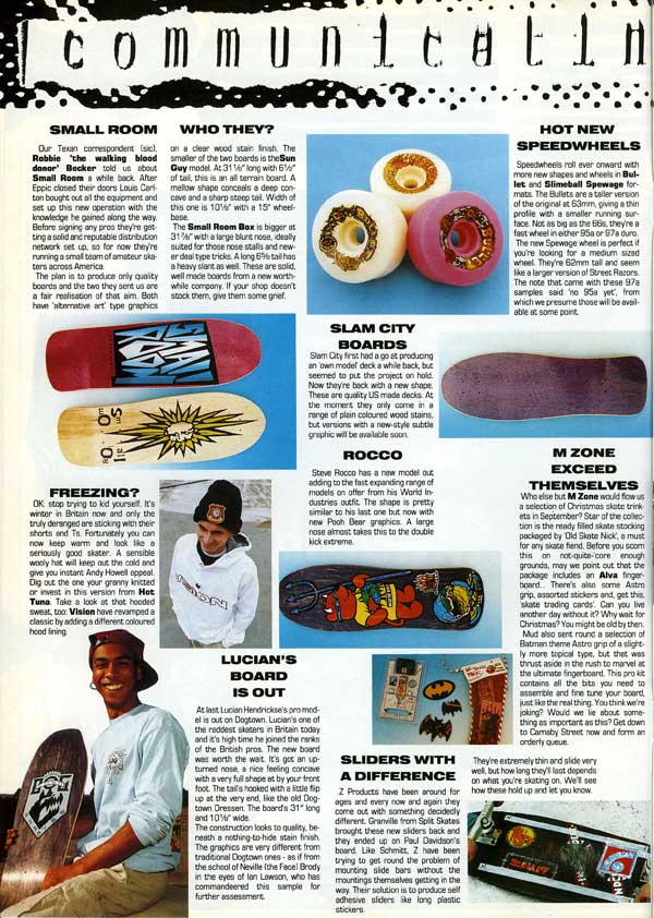 This month we heard about Sean Goff getting involved in SS20, Jeremy Fox getting back into the USA and Andy Ruffell getting more involved in running big events — all omens of things to come. Closer to the time were hints about a skater-owned distributor setting up near Southsea (the Abrook brothers, I think) and references to yet more things going on in Dundee.