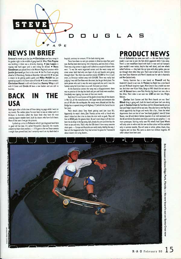 An interesting selection of letters this month. Nigel Bond from St Albans taking Sean Goff to task over some comments about coverage of non-Uk skating in British magazines. That’s a debate which is still going on to this day. Nigel’s in favour of coverage: “I rely on mags to fill me in on what’s going on all over the world and England, and yes I buy R.a.D every month and if it has foreign skaters in it I don’t mind, especially when the tricks they are doing are the tricks we learn to push our standards up.” (more…)