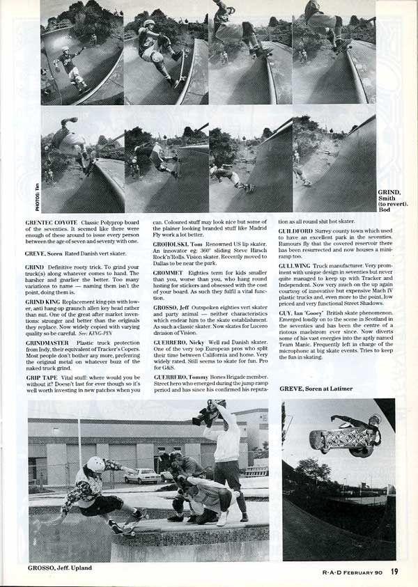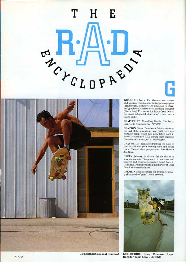 The R.a.D Encyclopaedia was a project which was never completed. It appeared on and off during the course of several years. Some people on the editorial team disliked it — a lot. Perhaps they confused it with one of those glossaries of skateboard jargon which would sometimes appear in the conventional media?
