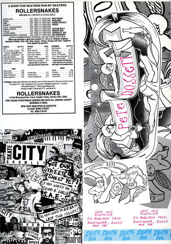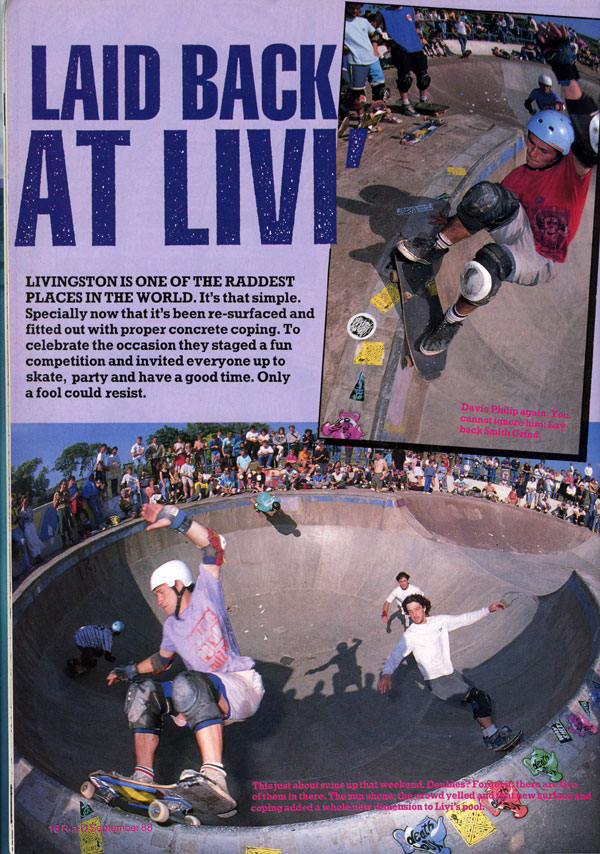 Almost any club entrepreneur could have supplied the ramp, but it would have only been a side attraction- used only to be fashionable on their restricted terms and then discarded like last year’s designer outfit. Here skating was the focus, unrestricted, ‘by skaters for skaters’, containing that certain anarchist undercurrent only skaters sow and then thrive on. Ultimately a success…