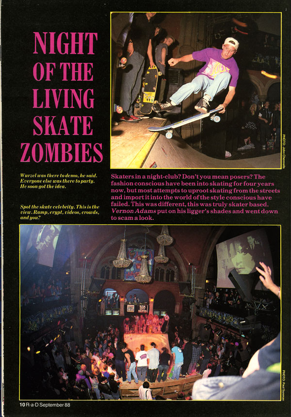 A plane. A time. A smell. Where am I going? Where have I been? A one way ticket from Clubland on a return trip to the mainstream. Acceptance, but on whose terms? Exploitation? Or some backyardramp fantasy? The Night of the Living Skate Zombies was certainly one thing.unique.
